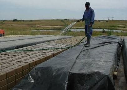 5. Bảo dưỡng khối cát : nó bao gồm làm ướt các khối bằng nước để cho phép hydrat hóa và làm cứng thích hợp diễn ra và cuối cùng đạt được sức mạnh đầy đủ.Ứng dụng có thể được thực hiện bằng cách tưới bình, vòi cao su hoặc xô, hoặc tưới nước lên các khối và phủ bằng bạt hoặc bao tải ẩm.